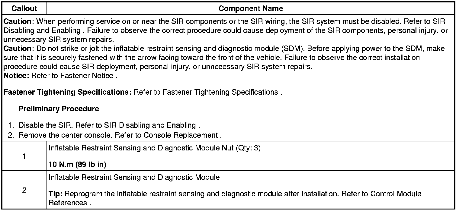 Inflatable Restraint Sensing and Diagnostic Module Replacement