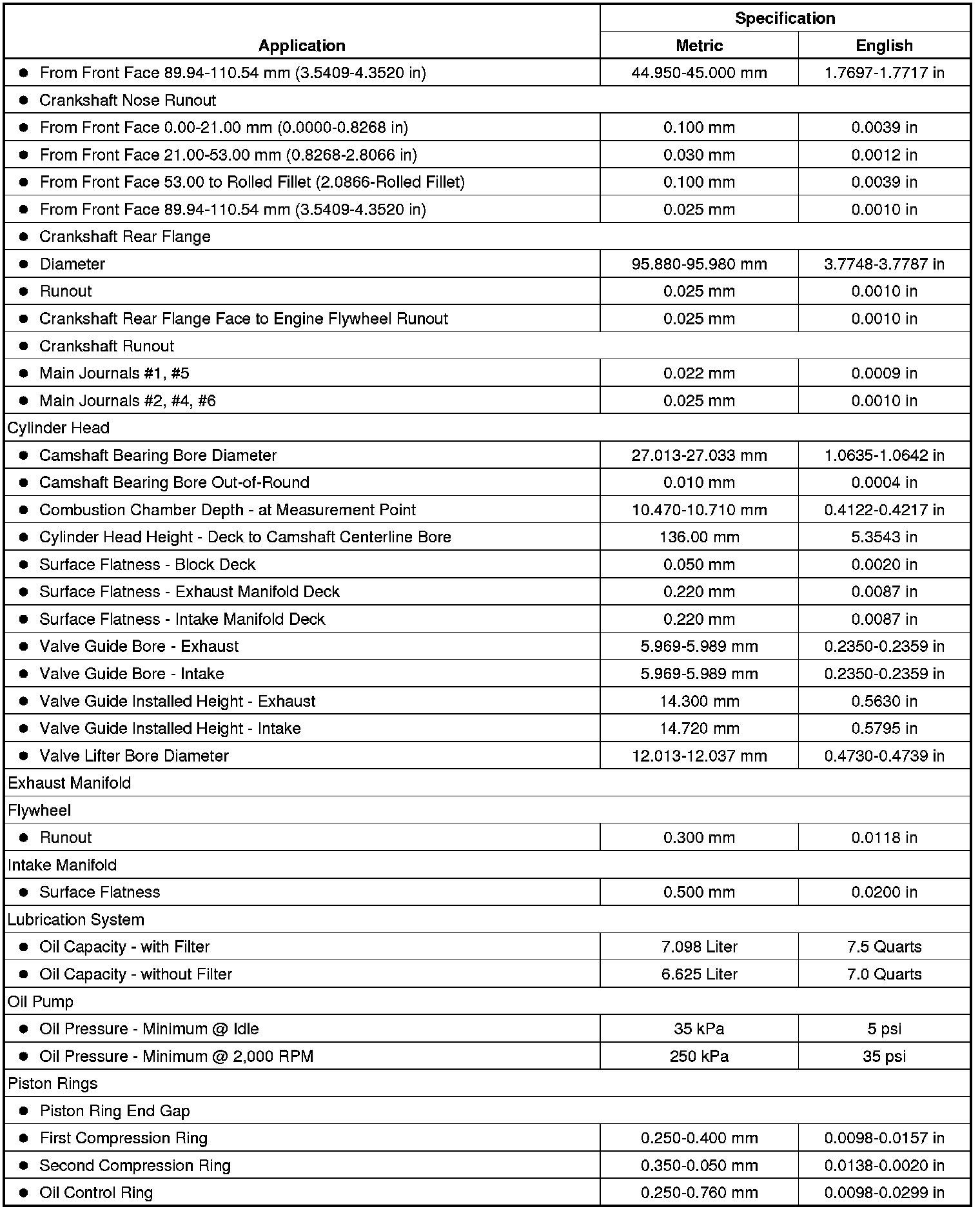 Engine Mechanical Specifications (RPO L37 VIN 9)