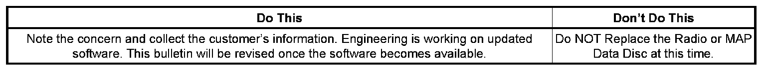 Early 2009 vehicles contained software anomalies where the Navigation radio may operate as described in the Condition section above.