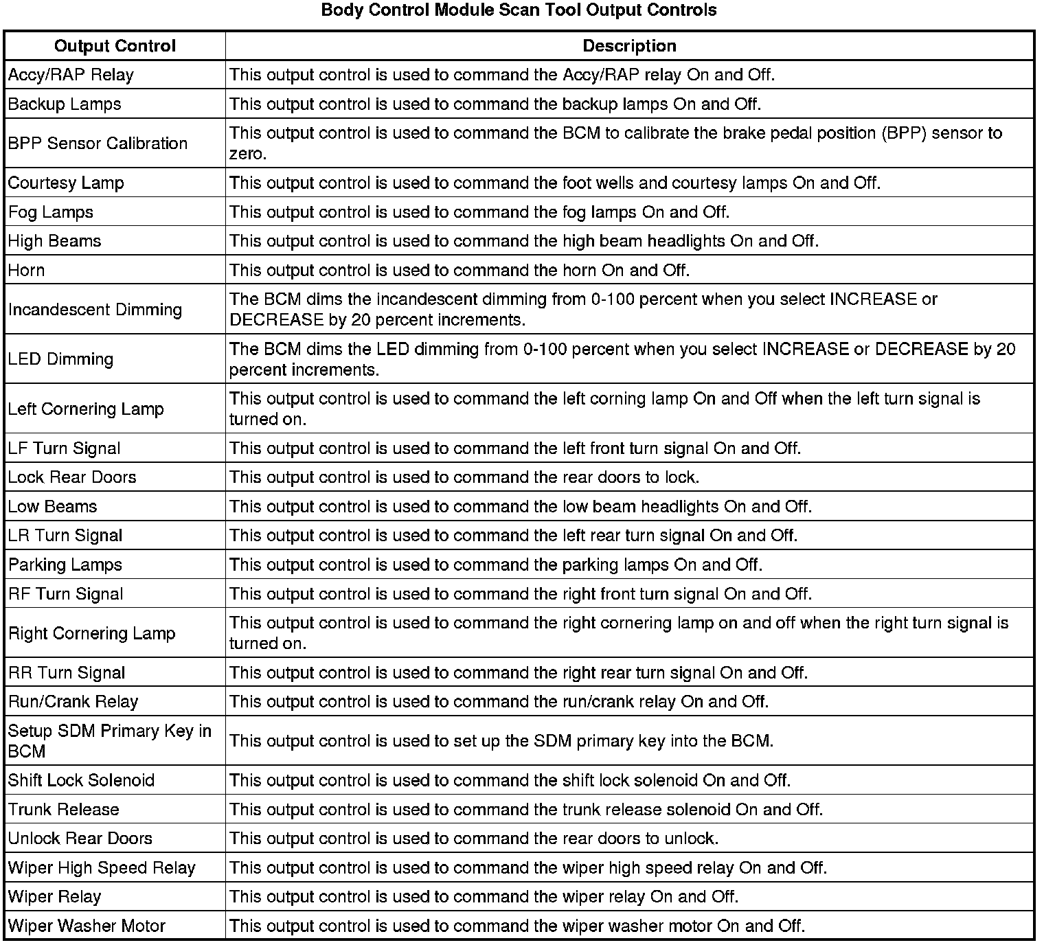 Body Control Module Scan Tool Information