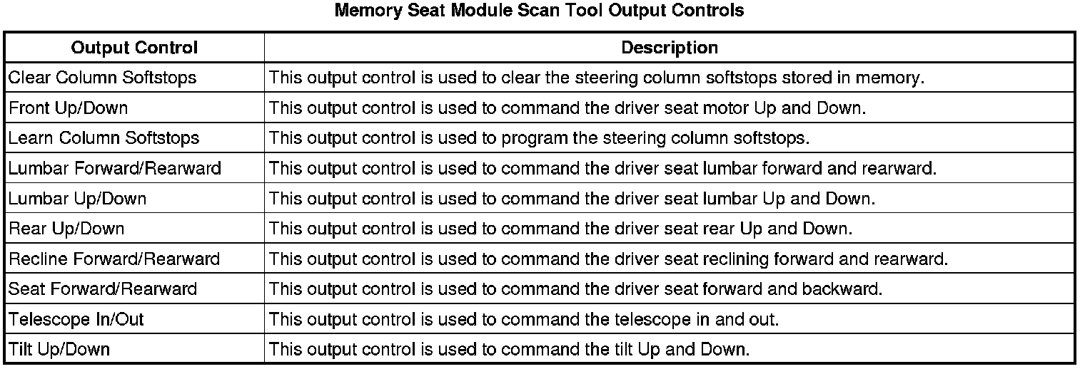 Driver Seat Adjuster Memory Module Scan Tool Information