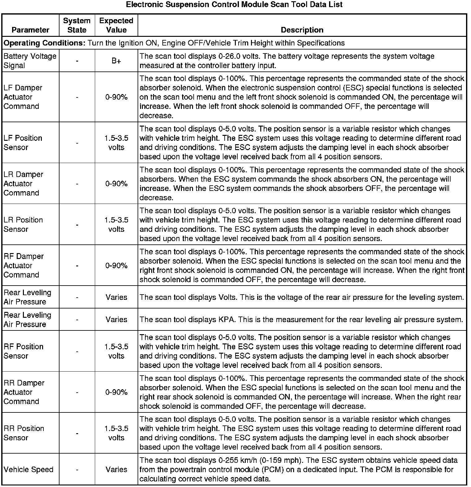 Electronic Suspension Control Module Scan Tool Information