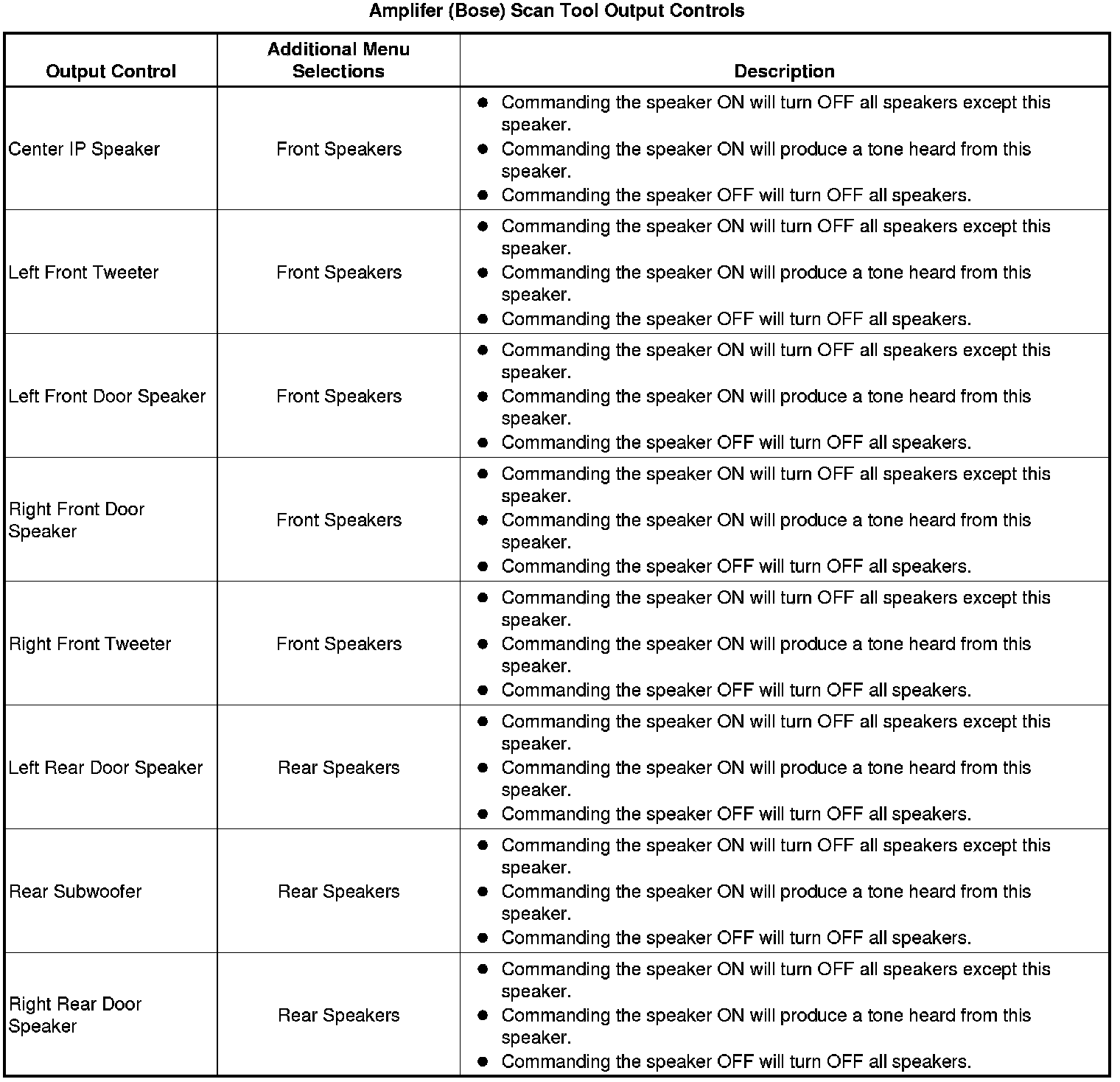 Radio Speaker Amplifier Scan Tool Information