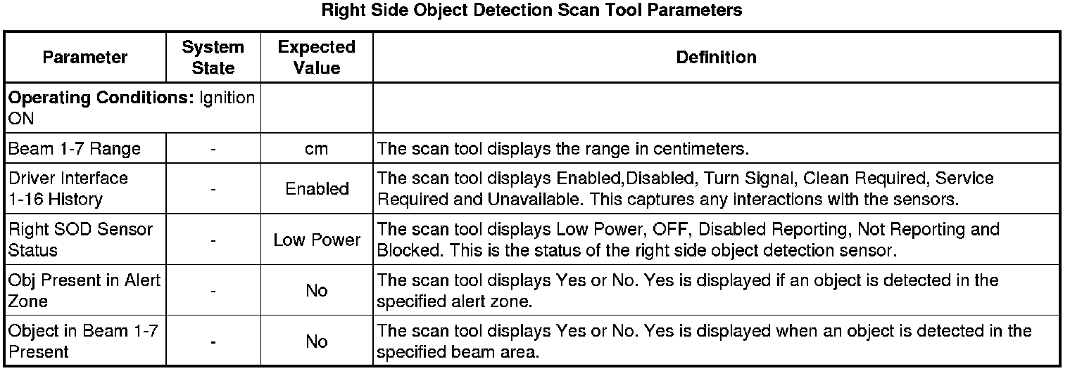 Side Object Sensor Module Scan Tool Information (Right Side)