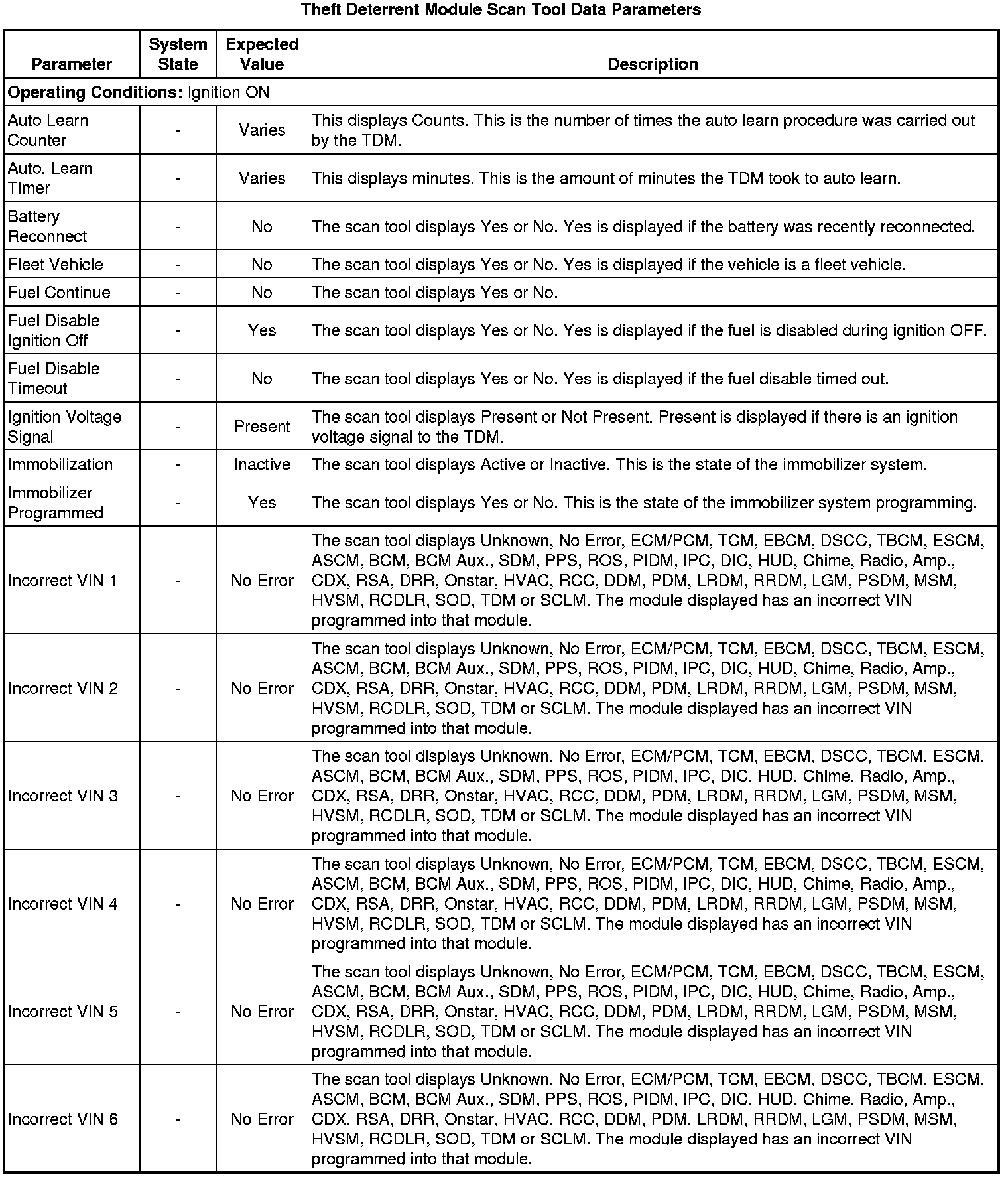 Theft Deterrent Module Scan Tool Information
