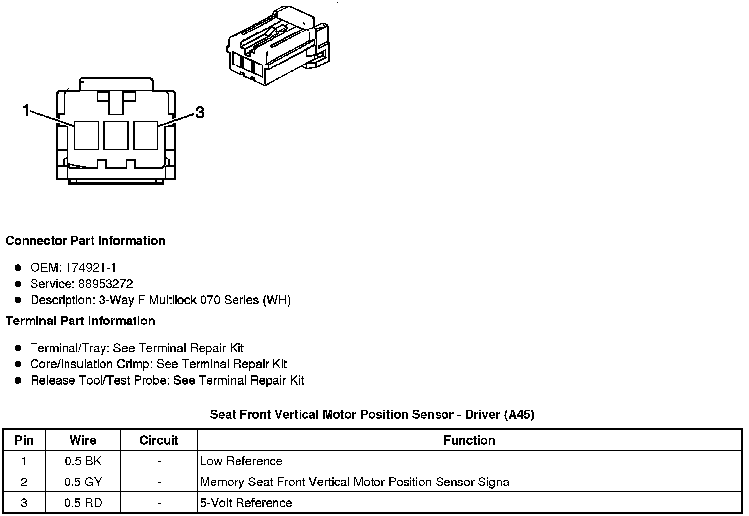 Seat Front Vertical Motor Position Sensor - Driver (A45)