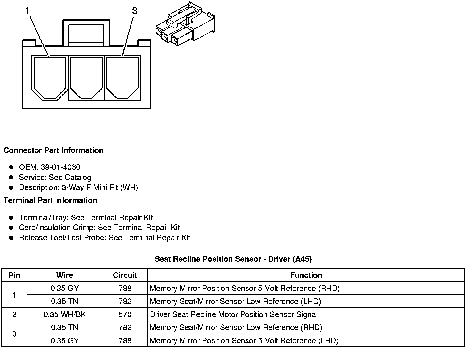 Seat Recline Position Sensor - Driver (A45)