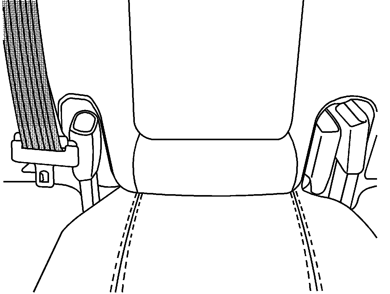 1. Buckle the center passenger position safety belt, then route the safety belts through the proper slots in the seat cushion. Do not let the safety belts get twisted.