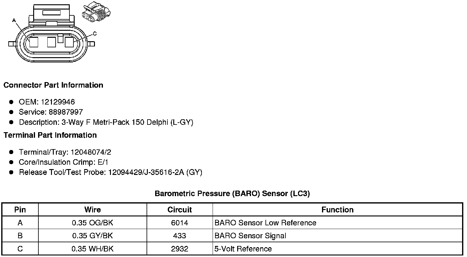 Barometric Pressure (BARO) Sensor (LC3 - 8 Cyl, 4.4L, MFI, V8, SC, ALUM, DOHC)