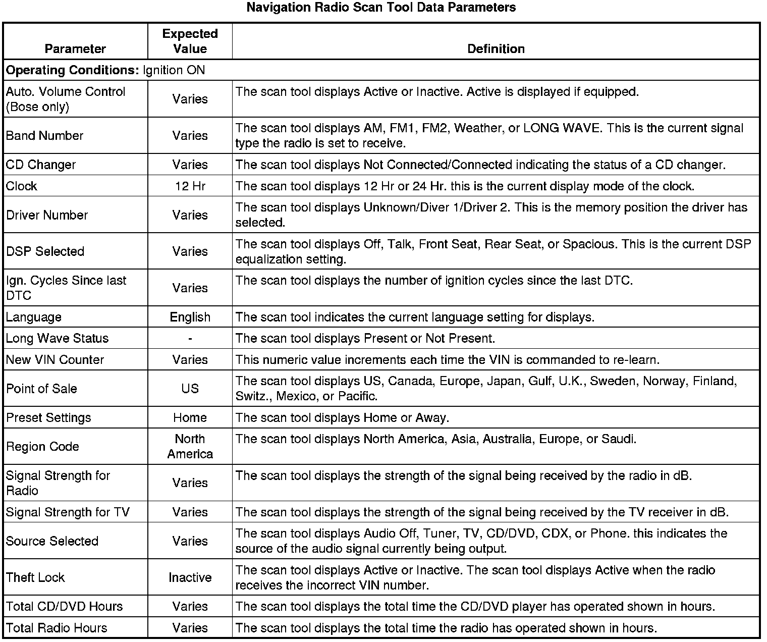 Radio Scan Tool Information (with Navigation Radio)
