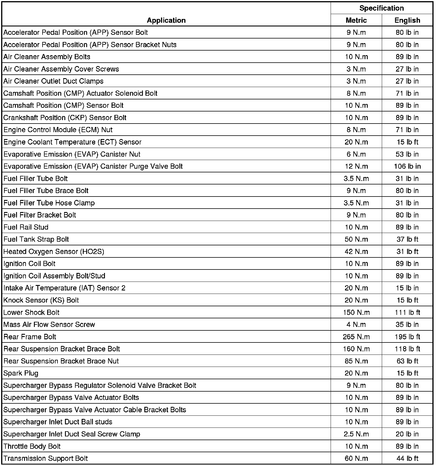 Fastener Tightening Specifications