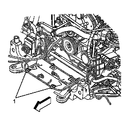 5. Disconnect the electrical harness retainers (1) securing the engine harness to the frame.