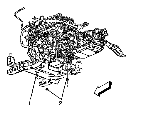 25. Remove the engine mounts lower retaining nuts (2).