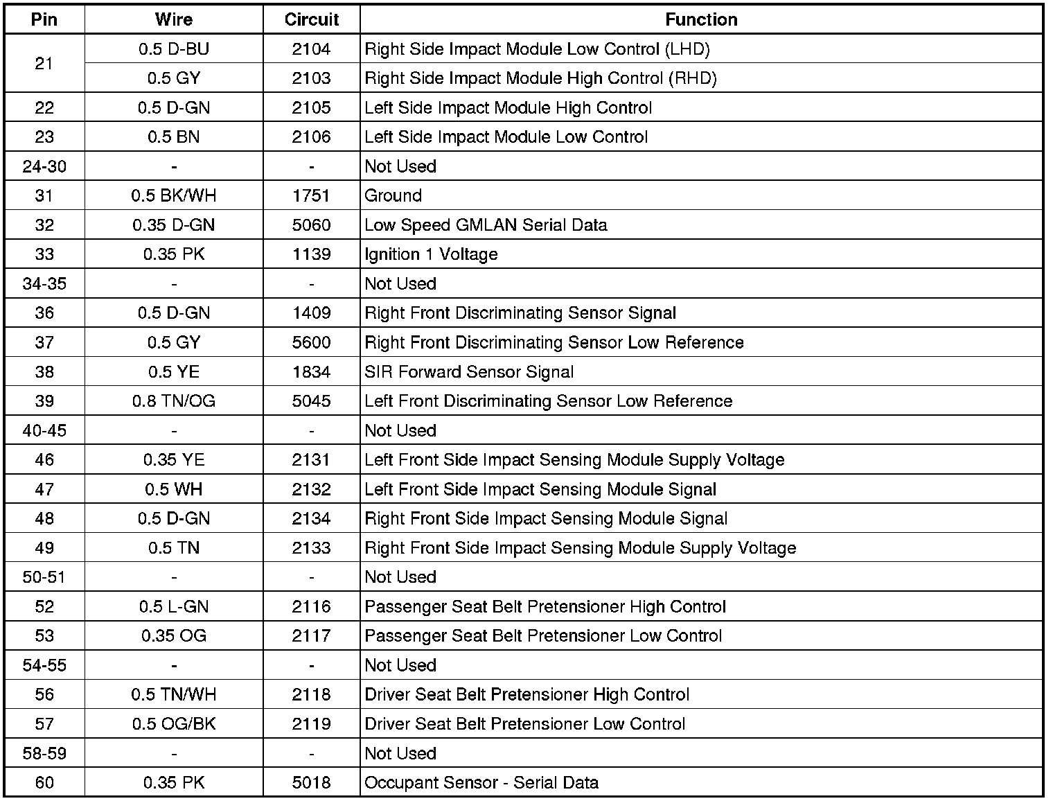 Inflatable Restraint Sensing and Diagnostic Module (SDM)
