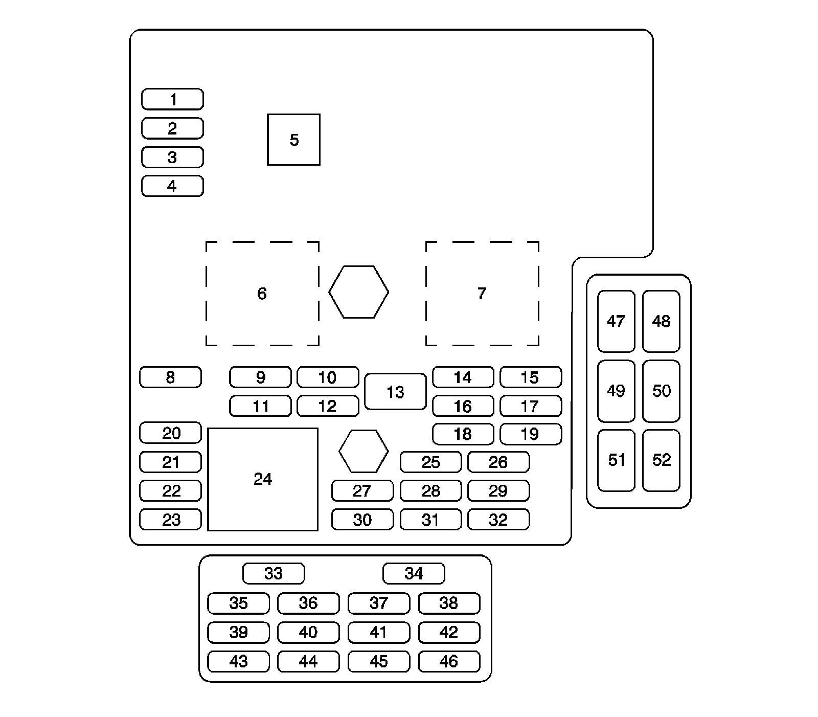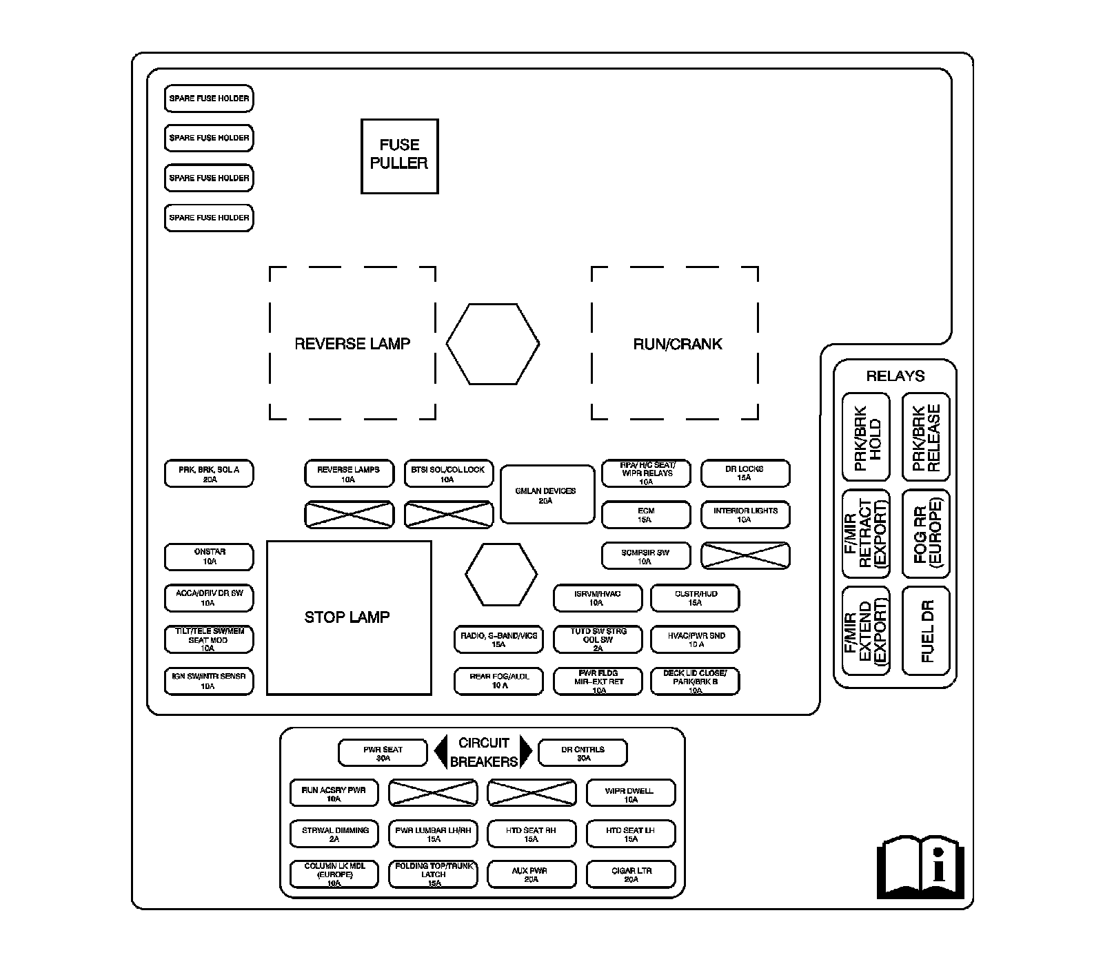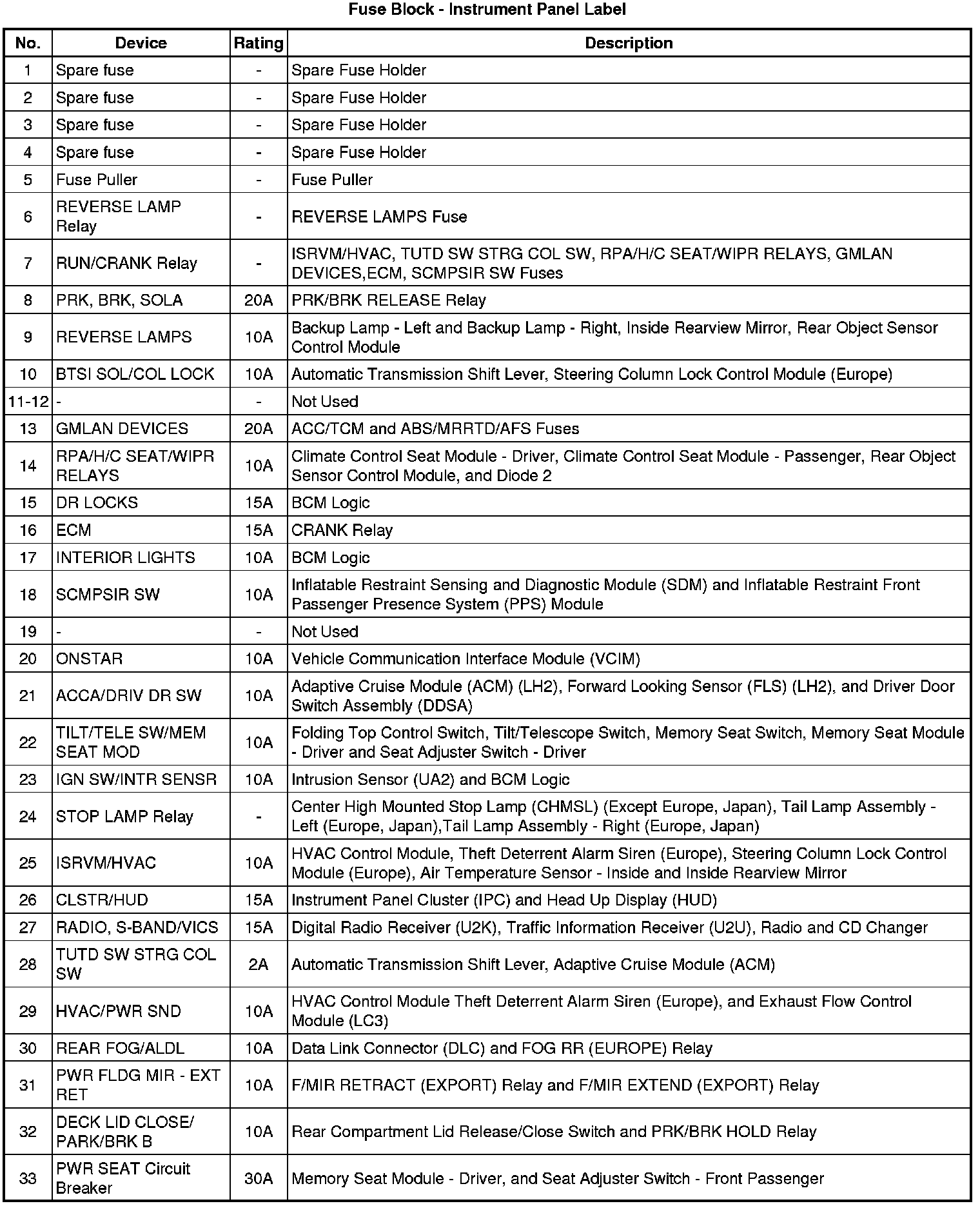 Fuse Block - Instrument Panel, Relay Block - Instrument Panel, and Body Control Module (BCM) Label