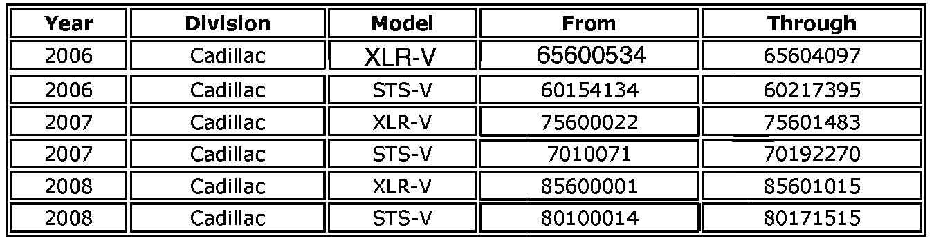 ^ 2008 Cadillac XLR-V, STS-V: Use data version 4.5 for 2008 as of 4/14/08 or later, available on TIS 2 Web; and on TIS DVD version 5.0/2008 or later, mailed to dealers beginning 5/07/08