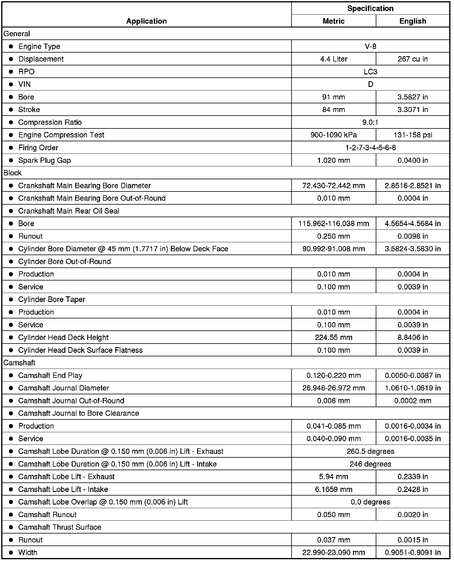 Engine Mechanical Specifications (RPO LC3 VIN D)