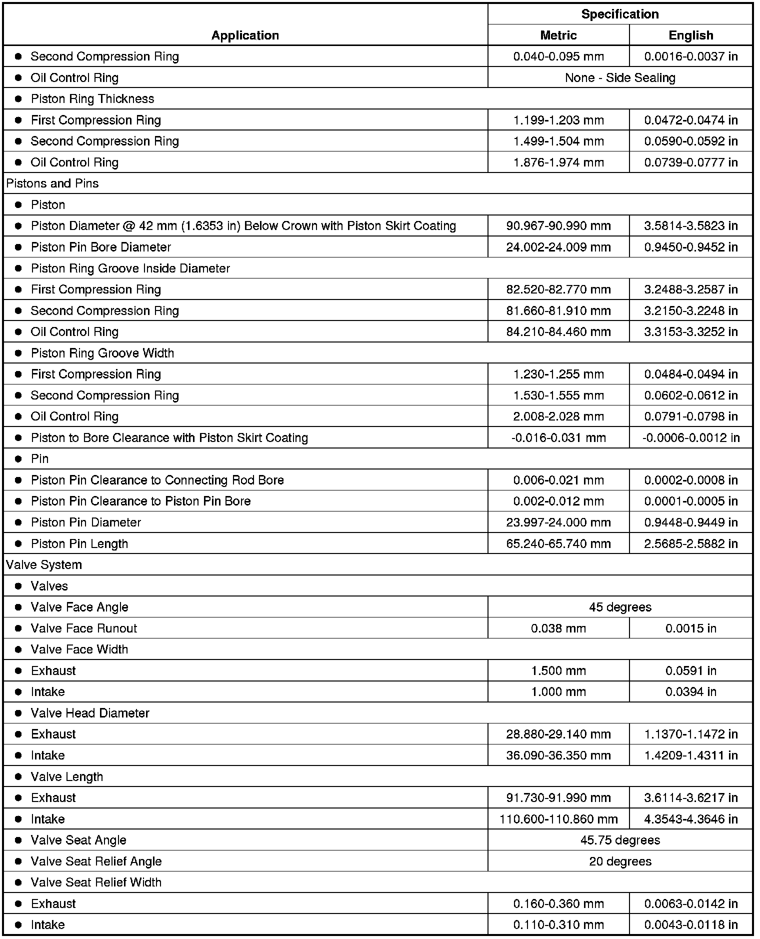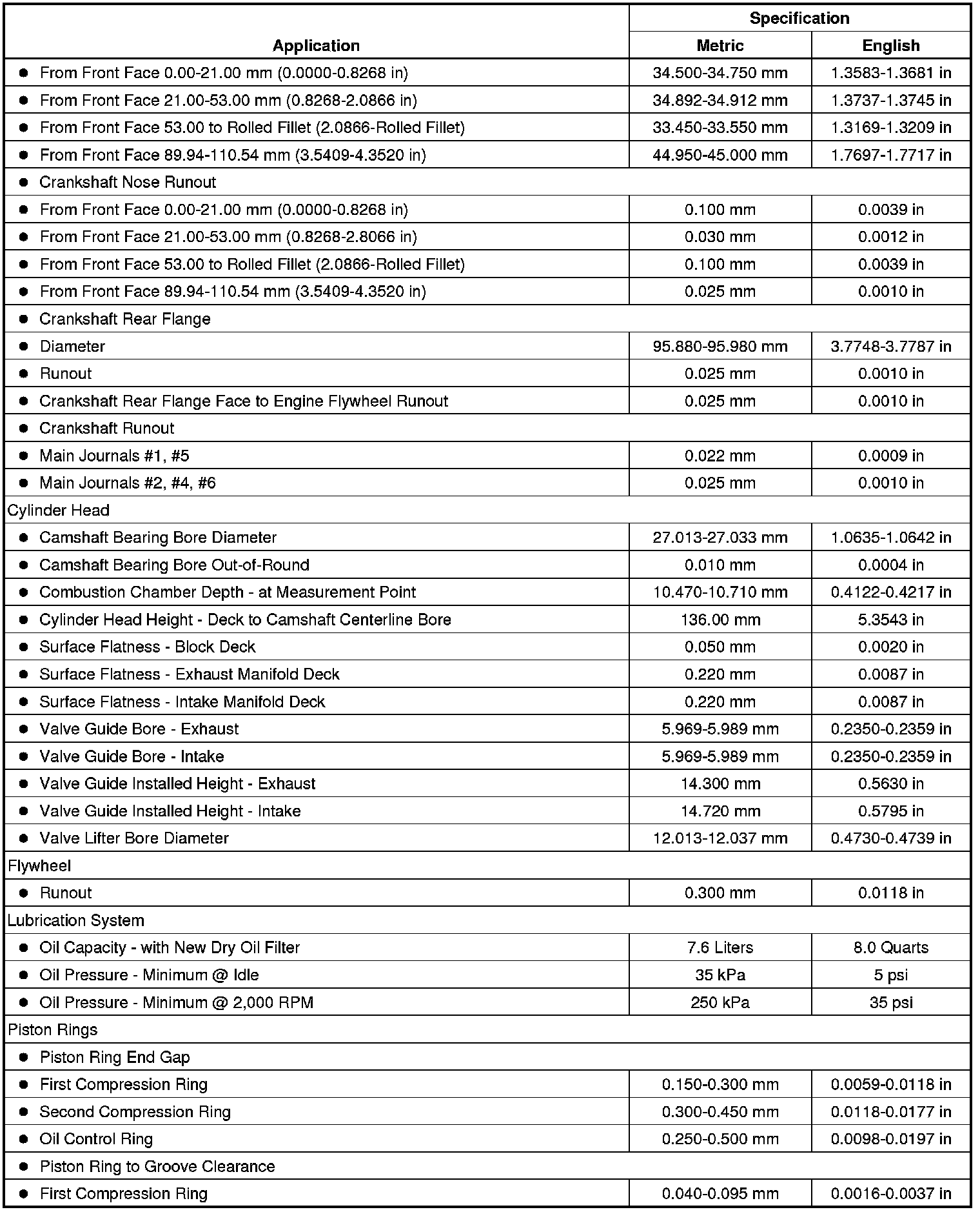 Engine Mechanical Specifications