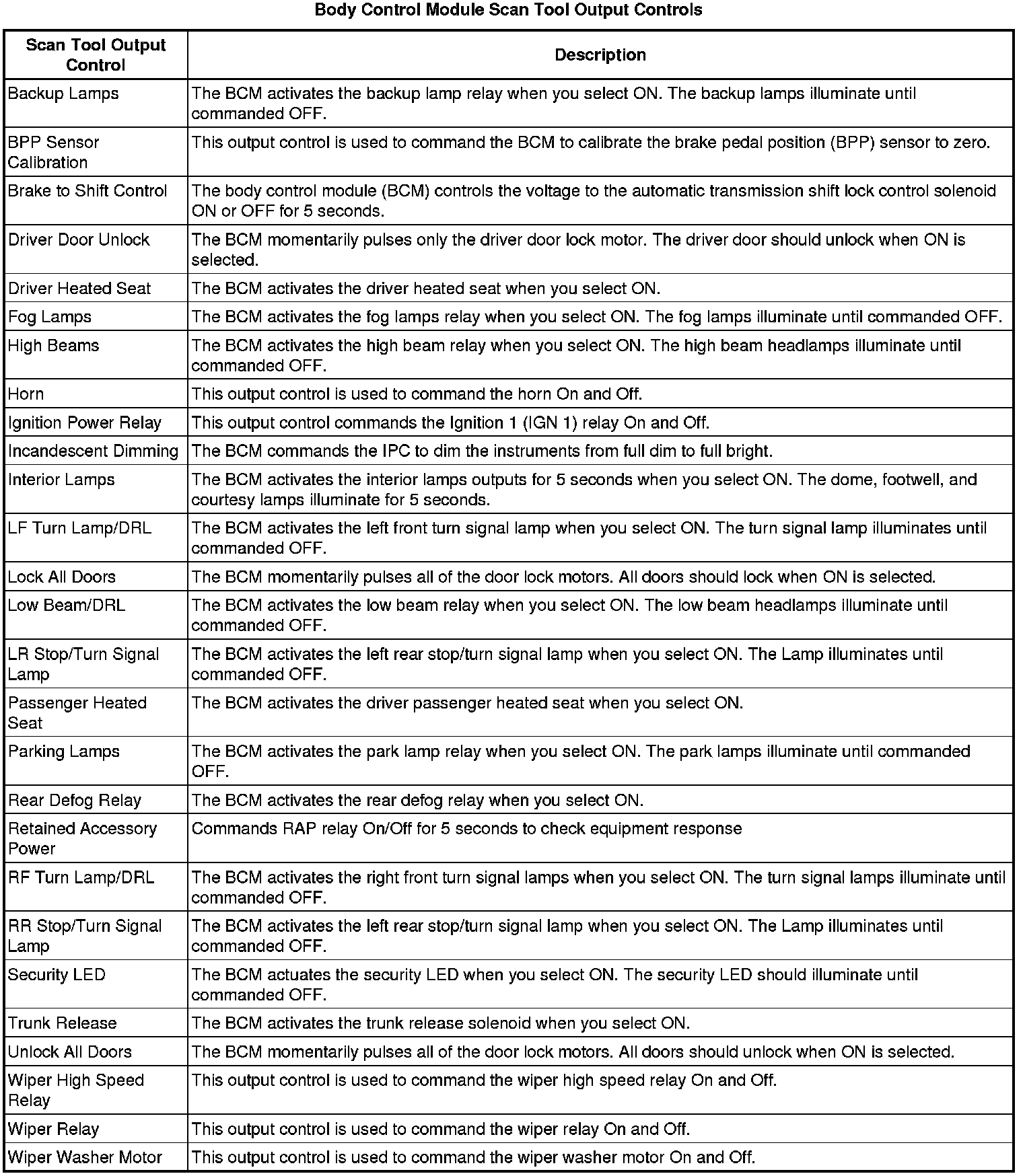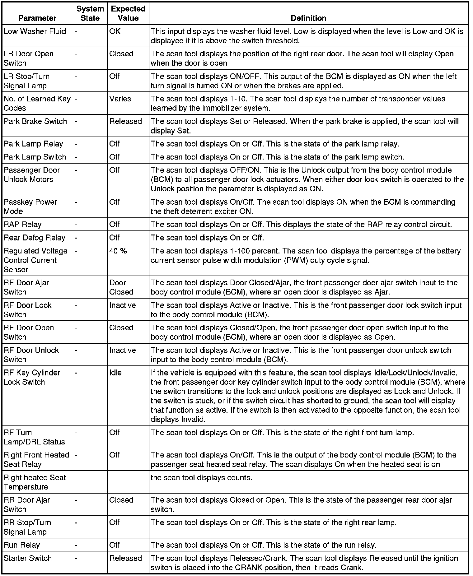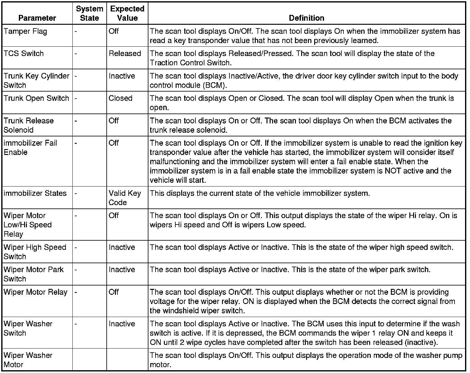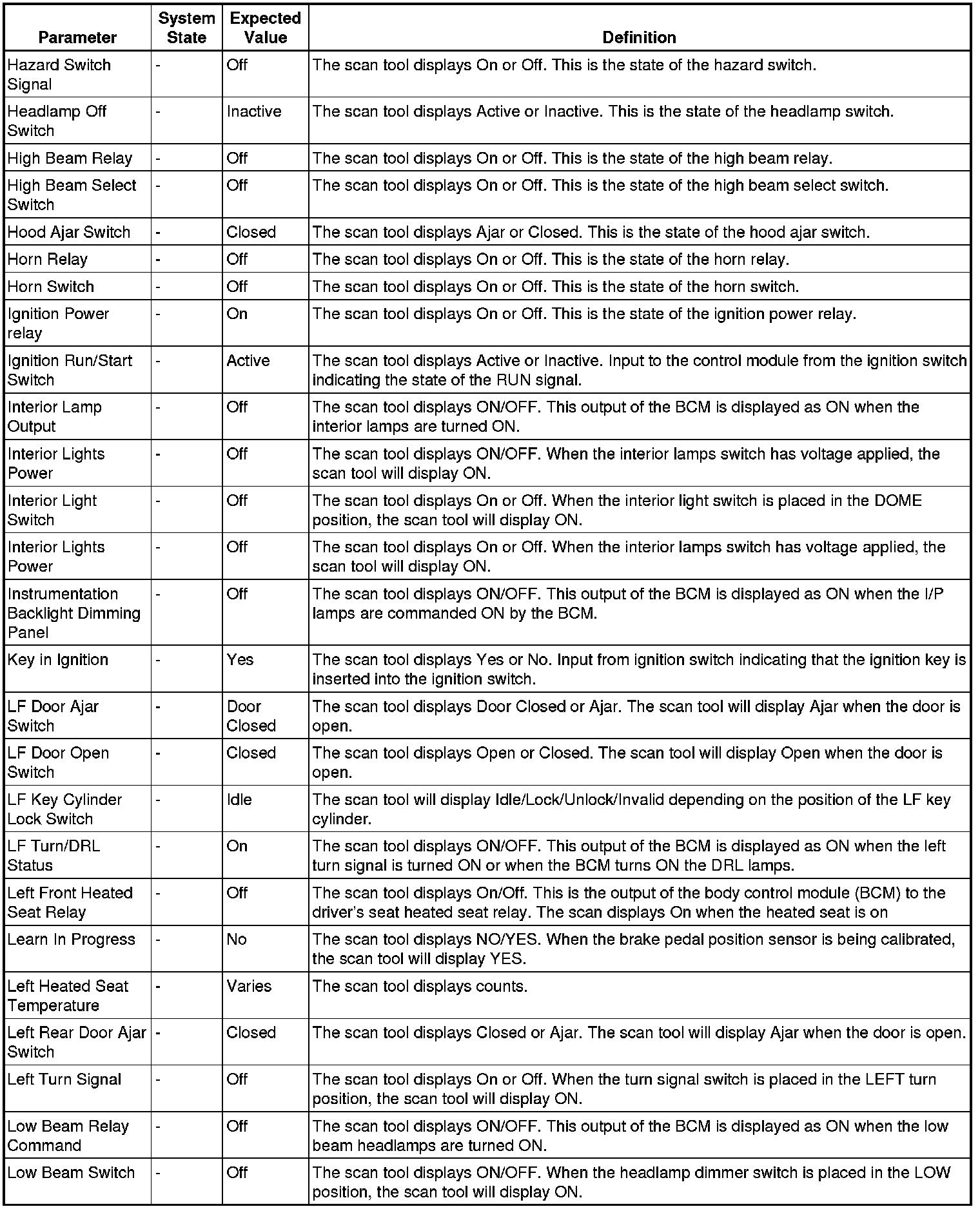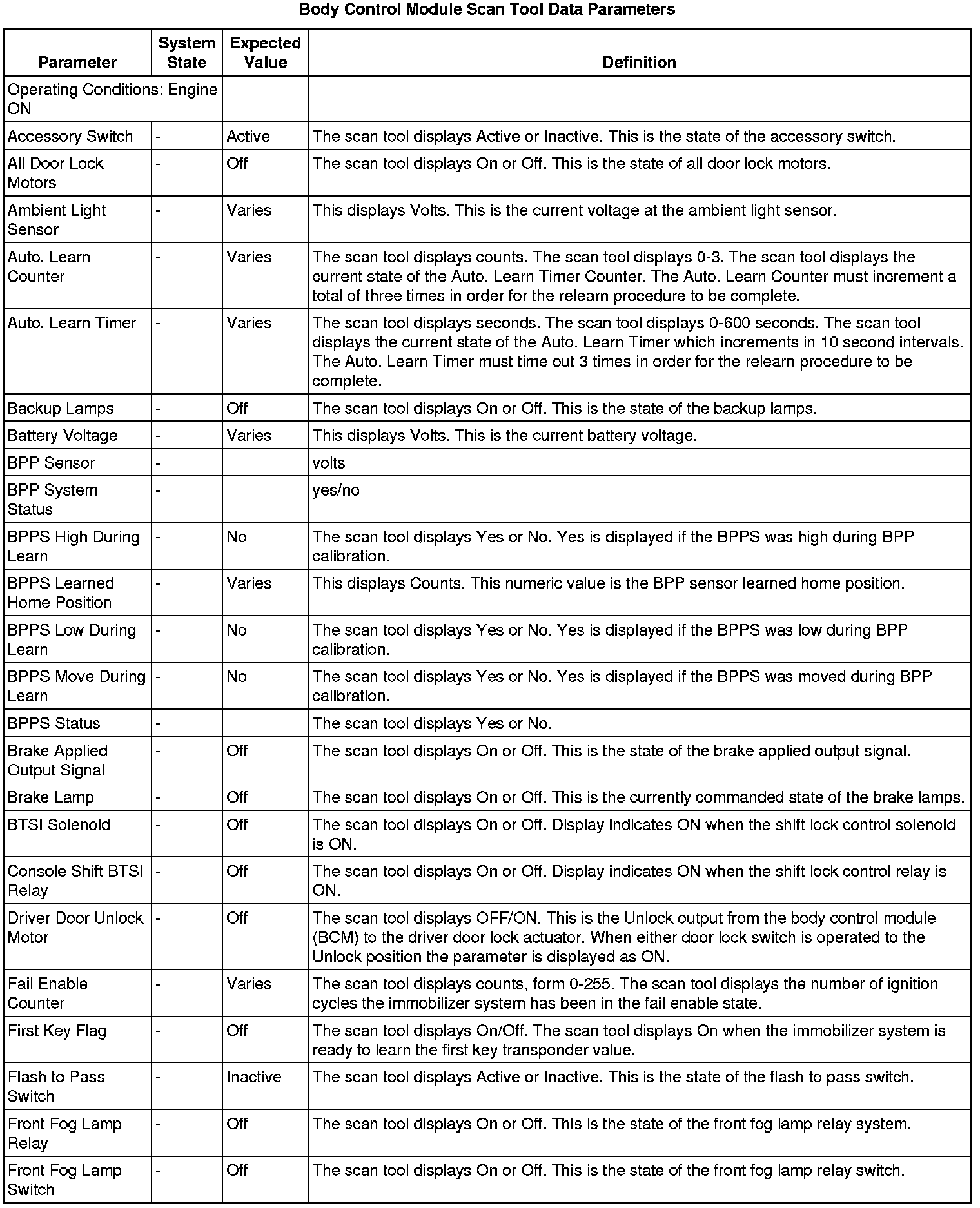 Body Control Module Scan Tool Information