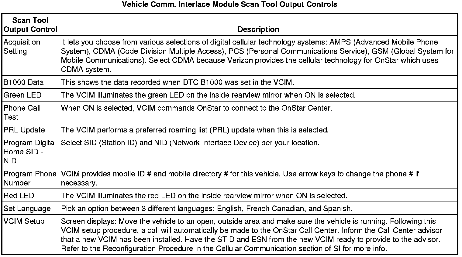 Communication Interface Module Scan Tool Information