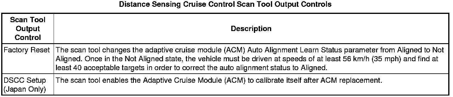 Cruise Control Module with Distance Sensing Scan Tool Information