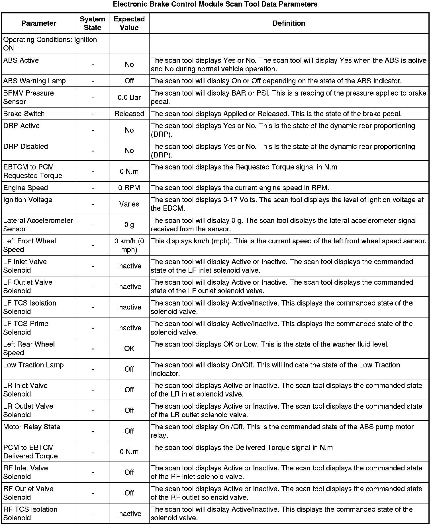 Electronic Brake Control Module Scan Tool Information
