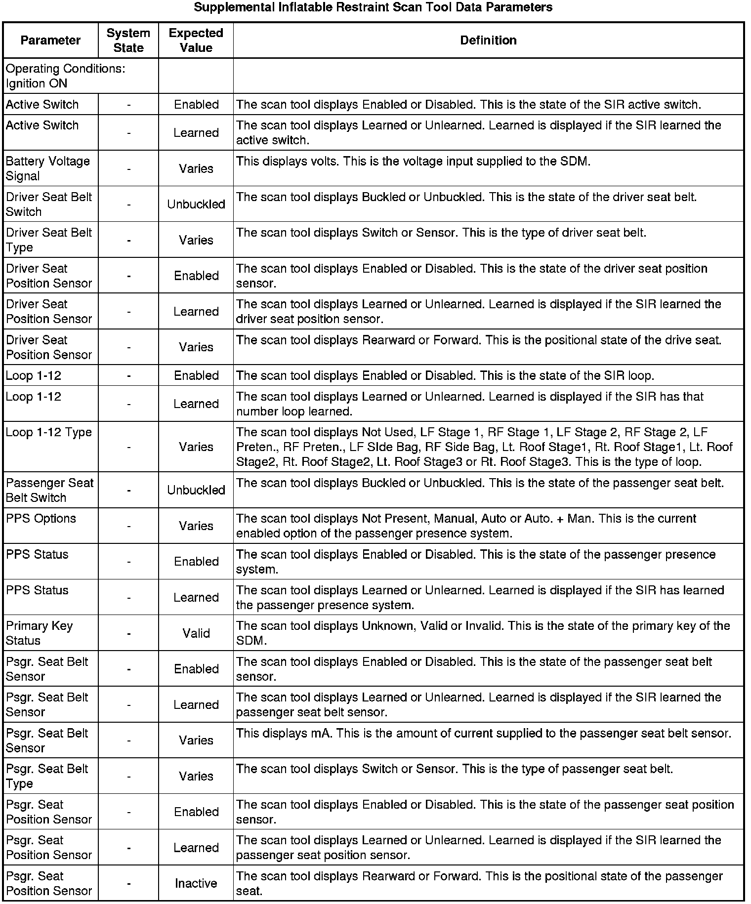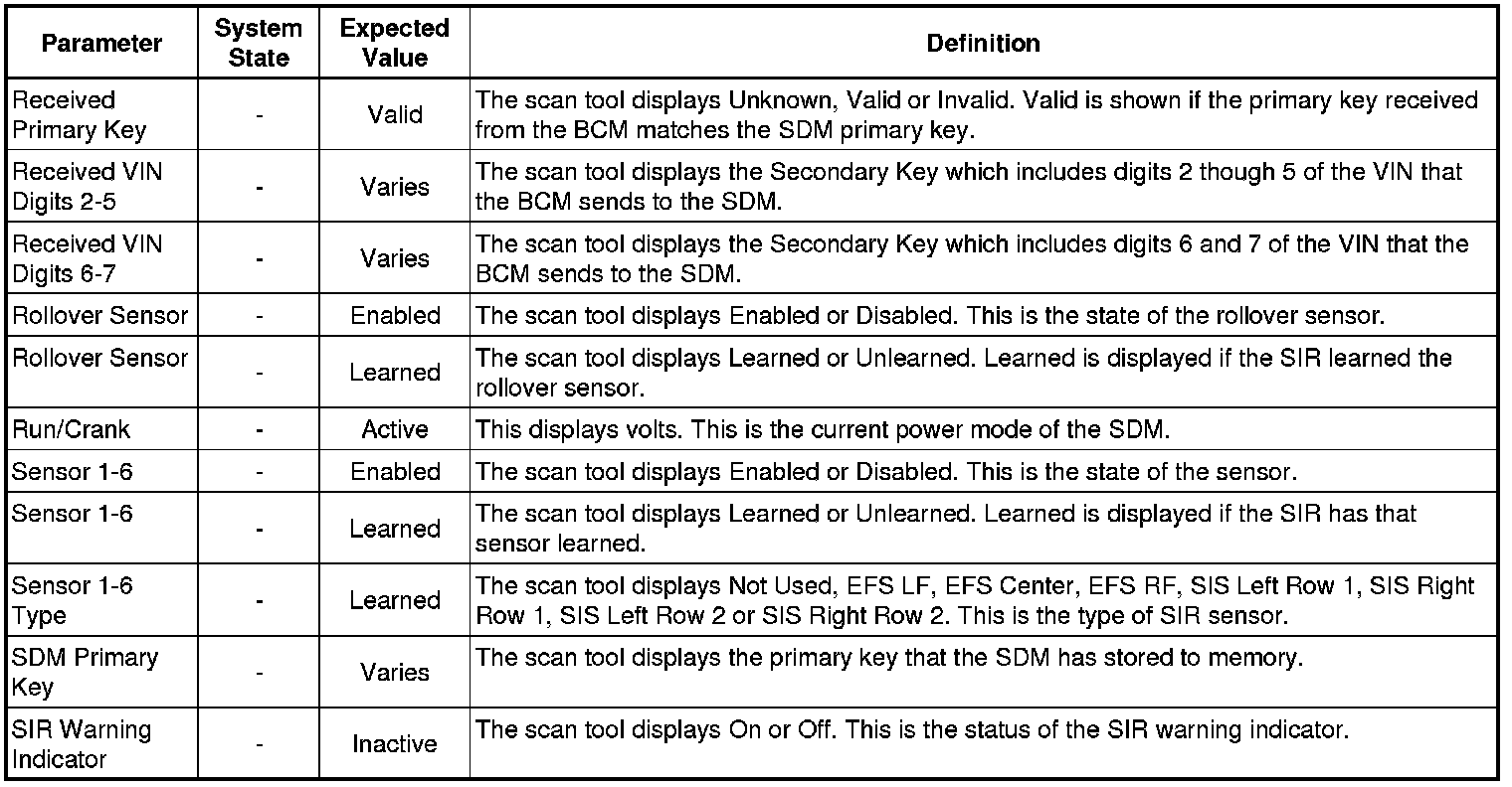 Inflatable Restraint Sensing and Diagnostic Module Scan Tool Information
