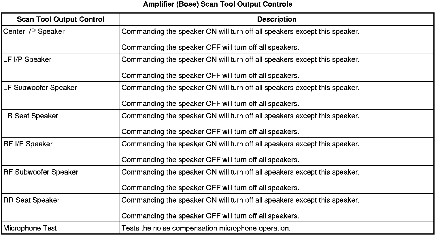 Radio Speaker Amplifier Scan Tool Information