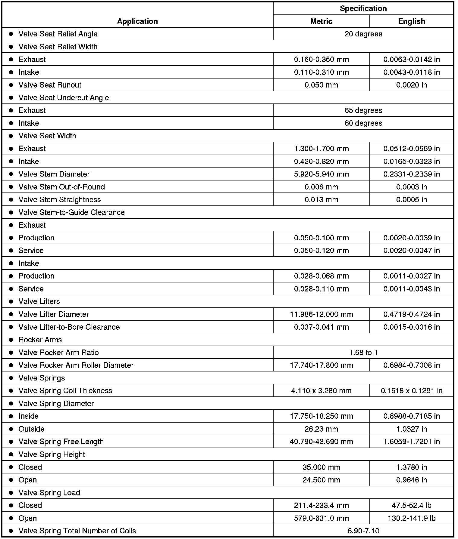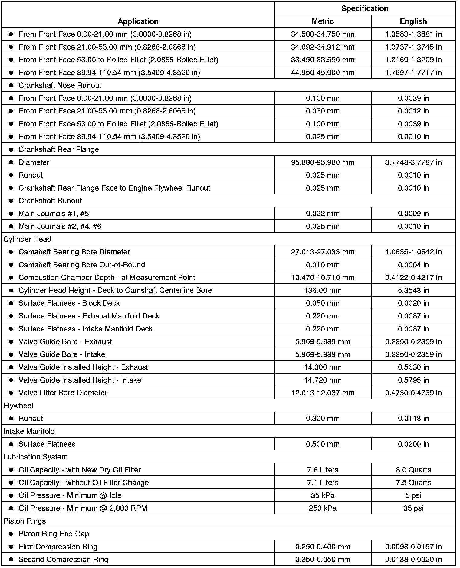 Engine Mechanical Specifications