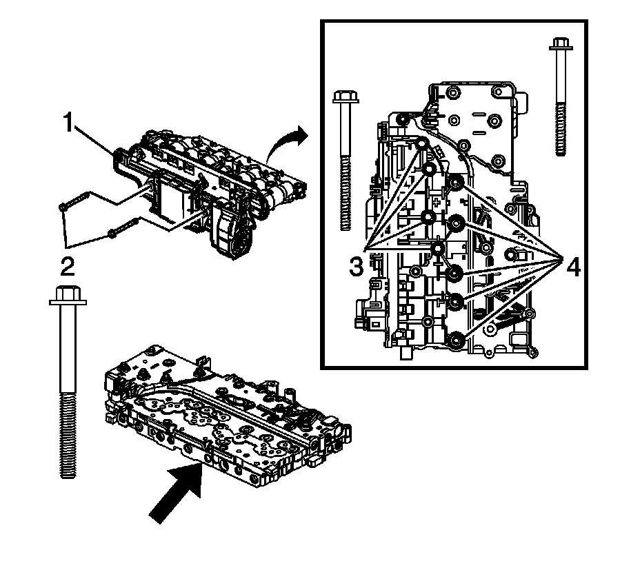 1. Remove the transmission oil pan and filter. Refer to Automatic Transmission Fluid, Fluid Pan and/or Filter Replacement (Removal and Replacement) .