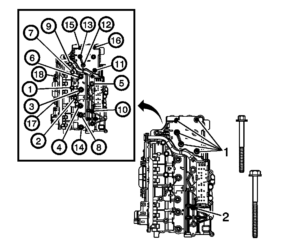 Notice: Bolt torque sequencing is critical to the proper function of the control solenoid valve assembly. Failure to follow the required sequencing may result in transmission malfunction.