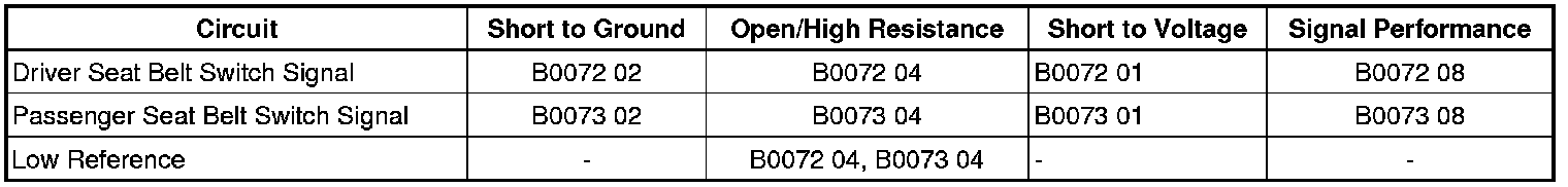 - Left Front Seat Belt Sensor Circuit Short to Ground