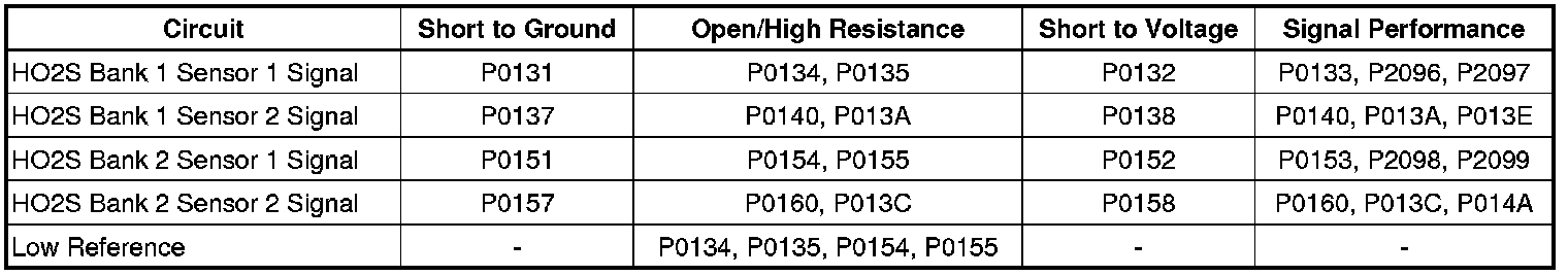 * Before the ECM can reports that DTC P013A, P013C, P013E, or P014A failed, DTCs P0030, P0031, P0032, P0050, P0051, P0052, P0135, and P0155 must run and pass.