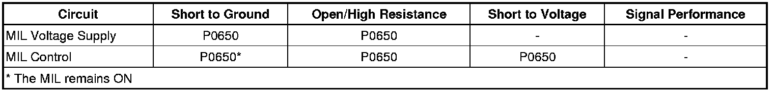 The ECM detects an open, a short to ground, or a short to voltage on the circuit that controls the MIL.