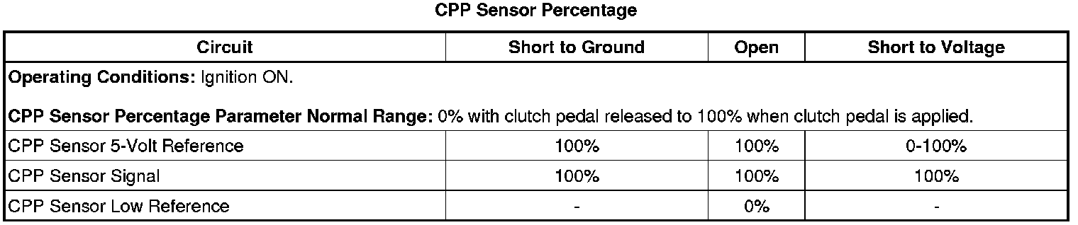 - Clutch Pedal Position (CPP) Sensor Circuit Low Voltage