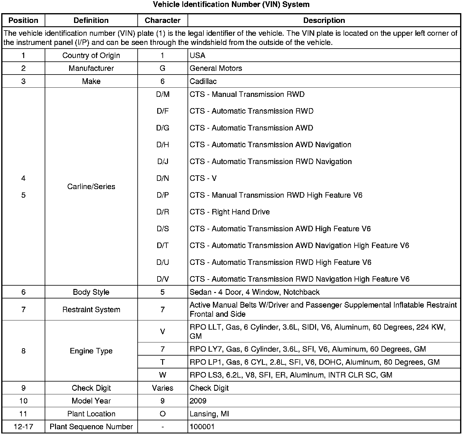 Vehicle, Engine and Transmission ID and VIN Location, Derivative and Usage