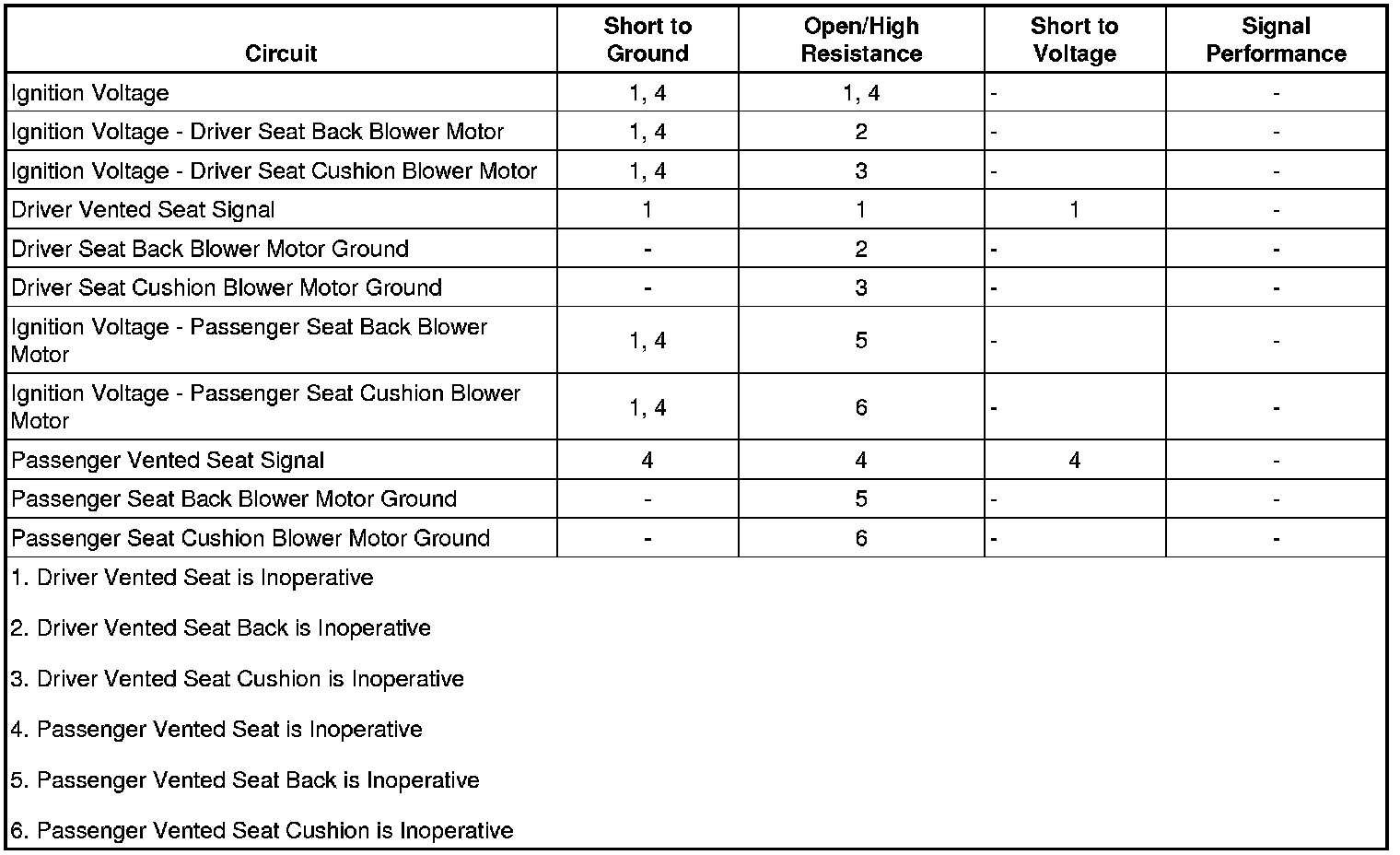 3. If all scan tool readings test normal and the driver and/or passenger vented seat is inoperative, refer to Circuit/System Testing.