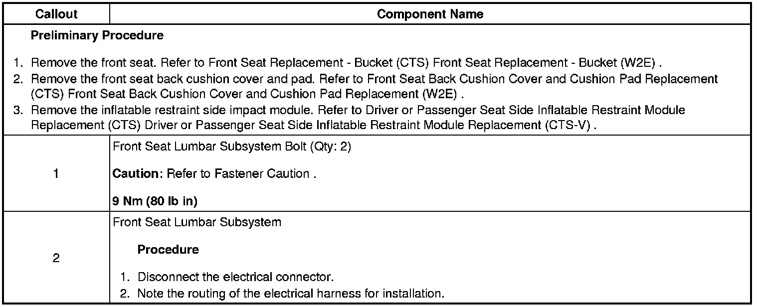 Seat Lumbar Sub System Replacement (without Active Headrest)