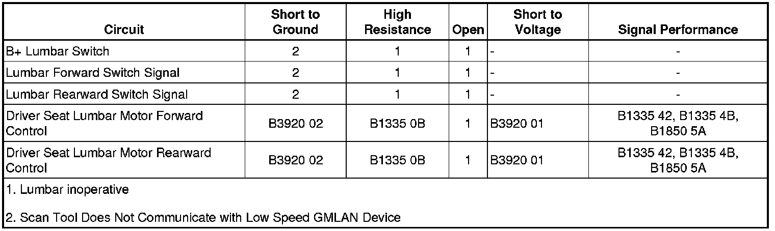 3. If all lumbar switch inputs to the MSM function normal, refer to the Lumbar Motor Control Circuit Test.