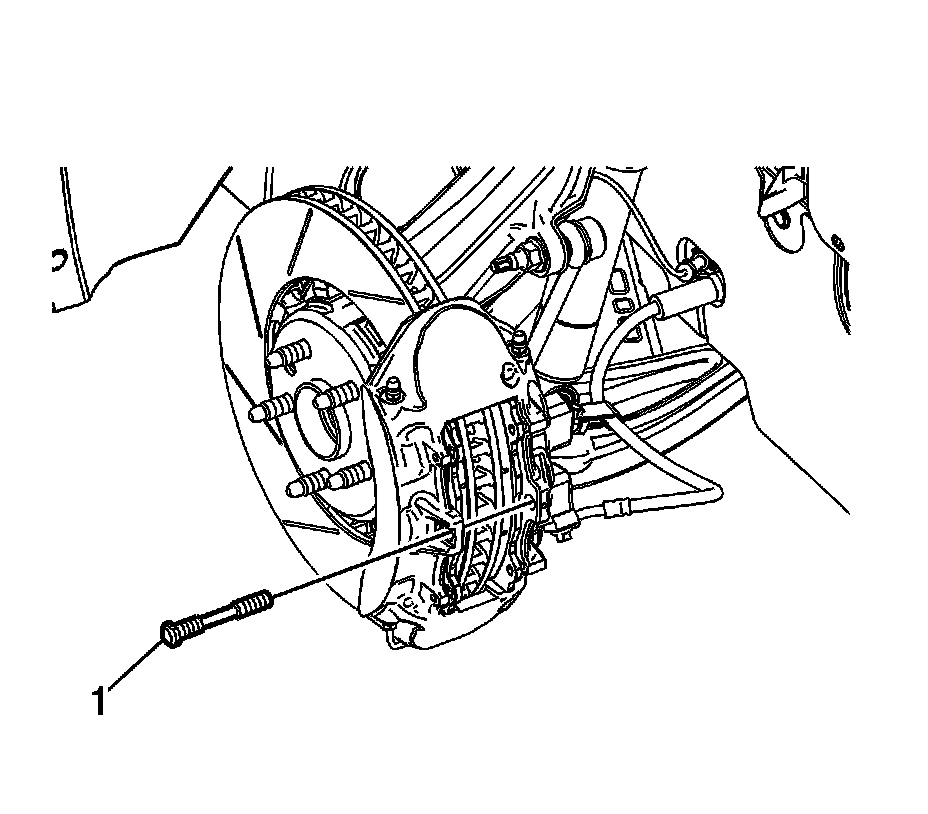 5. Install the brake caliper bridge pin bolt (1) and tighten to 33 Nm (24 lb ft).
