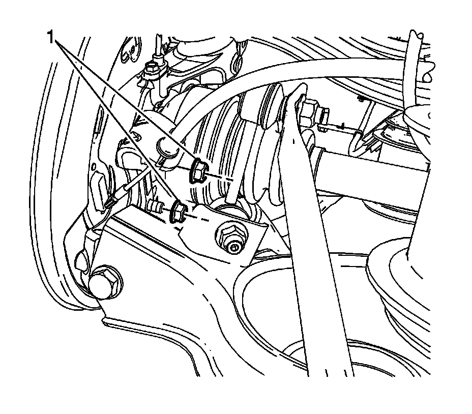 2. Install the parking brake cable bracket nuts (1) and tighten to 60 Nm (44 lb ft).