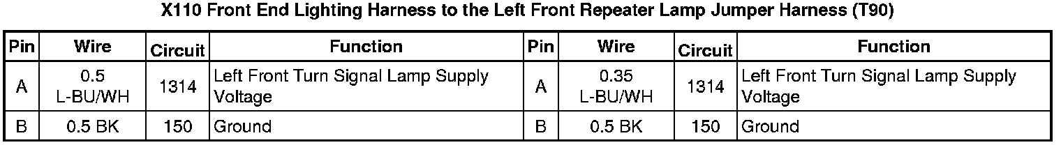 X110 Front End Lighting Harness to the Left Front Repeater Lamp Jumper Harness (T90)