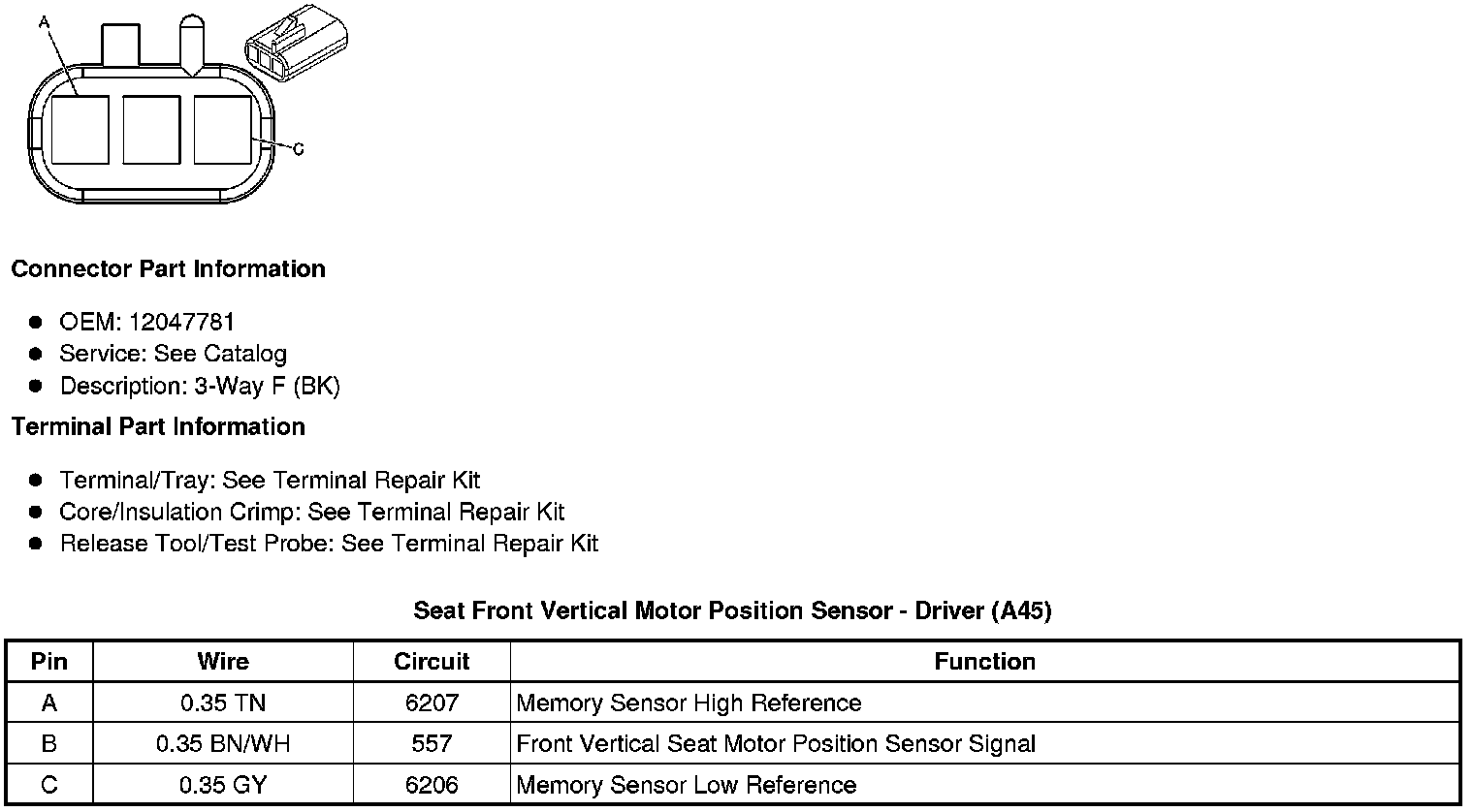 Seat Front Vertical Motor Position Sensor - Driver (A45)