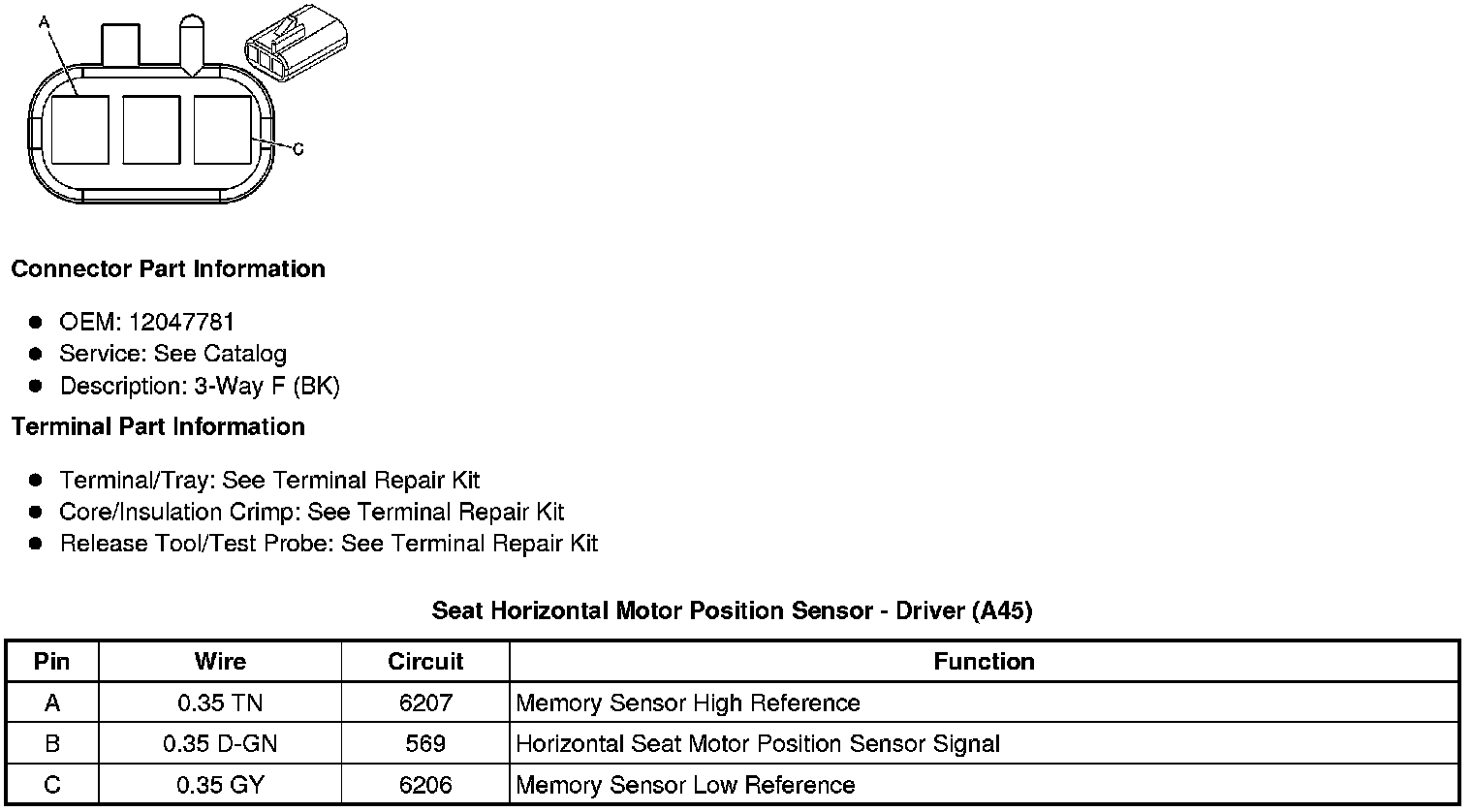 Seat Horizontal Motor Position Sensor - Driver (A45)