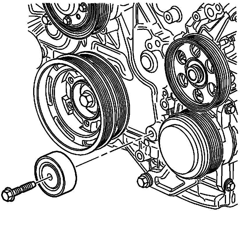 2. Install the drive belt idler pulley bolt and tighten to 50 Nm (37 lb ft).