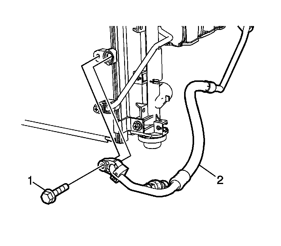 5. Install the condenser tube bolt (1) and tighten to 9 Nm (80 lb in).