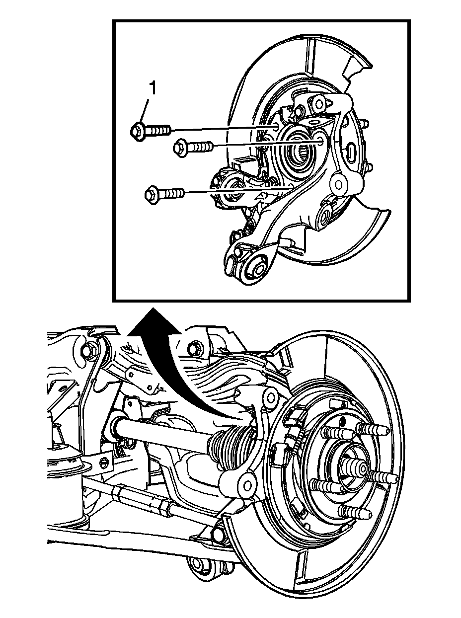 1. Position the rear wheel bearing/hub (1) assembly in the knuckle.