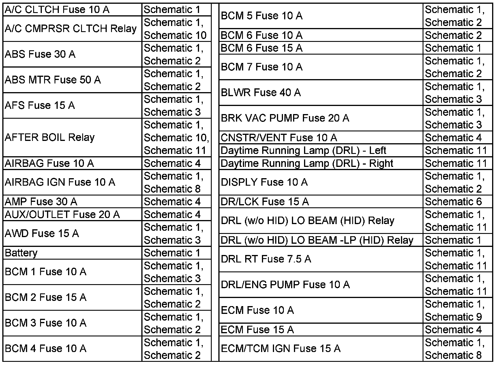 A/C CLTCH Fuse 10 A - ECM/TCM IGN Fuse 15 A: