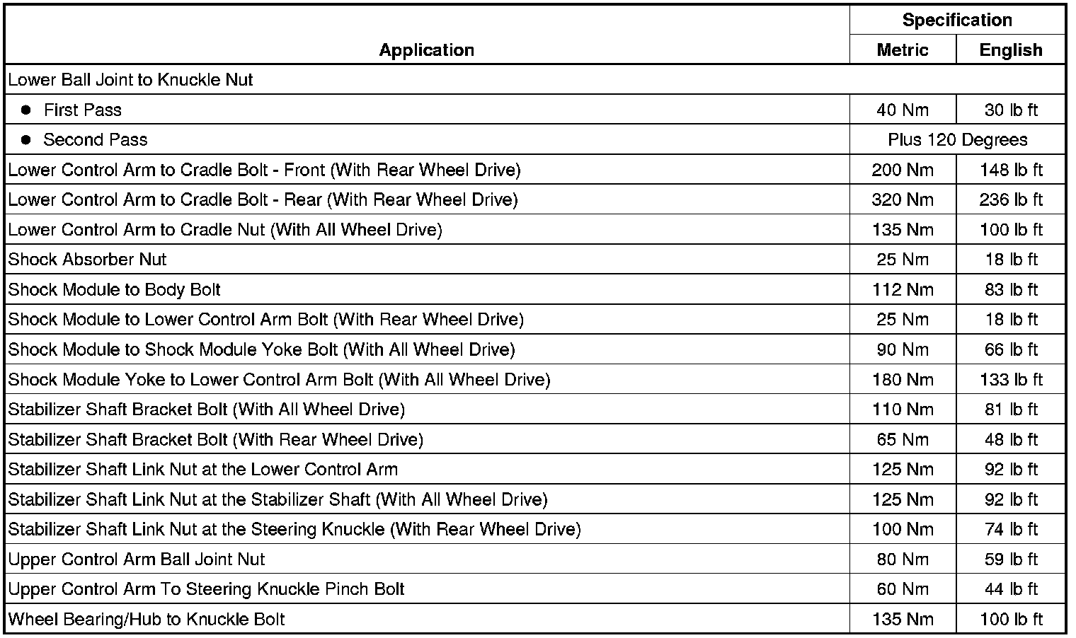 Fastener Tightening Specifications