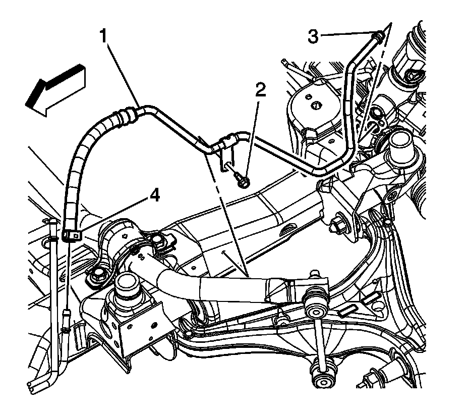 3. Connect the power steering gear outlet hose (4) to the power steering cooler hose.